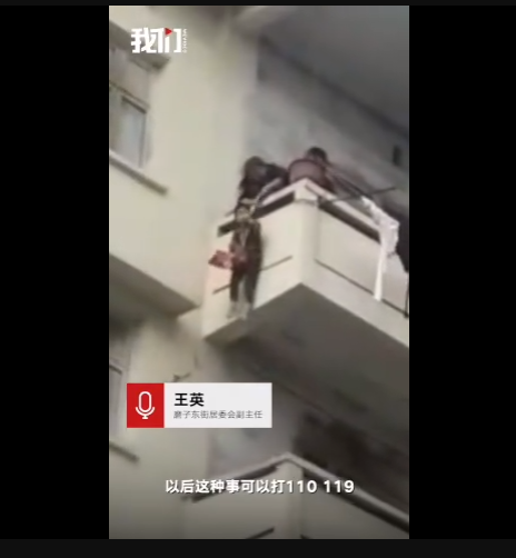 一只貓跑到了百順街老百貨公司宿舍樓三樓的窗戶遮雨臺上,被5樓的老太太發(fā)現(xiàn),老太太善心發(fā)作,竟將孫子用繩子吊起,從5樓慢慢放至3樓救貓,整個(gè)過程不禁令人捏汗。