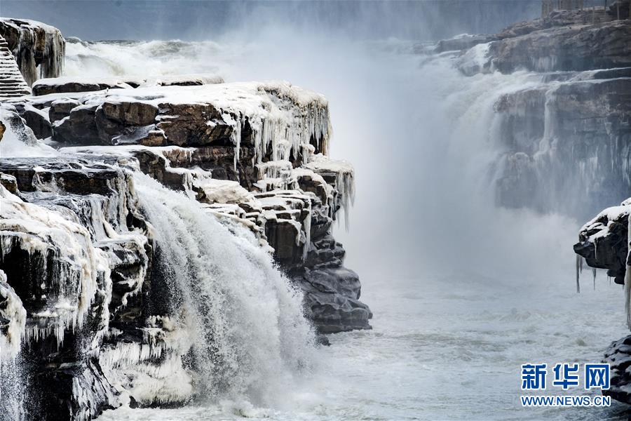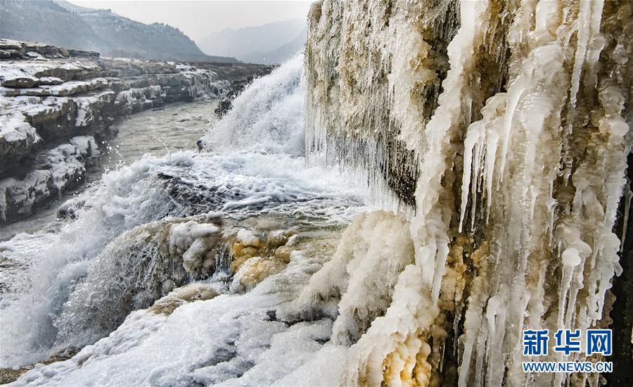 壺口瀑布因氣溫降低形成的景觀(12月14日攝)。新華社記者陶明攝