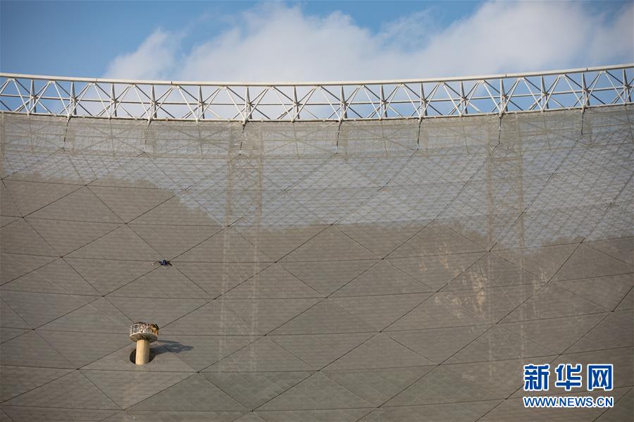 8月28日,工作人員在對(duì)FAST進(jìn)行檢修。近日,工作人員對(duì)“中國(guó)天眼”進(jìn)行日常維護(hù)和檢修,給“天眼”進(jìn)行全面“體檢”。被譽(yù)為“中國(guó)天眼”的500米口徑球面射電望遠(yuǎn)鏡(FAST)于2016年9月25日落成啟用,即將迎來(lái)落成三周年。新華社記者歐東衢攝