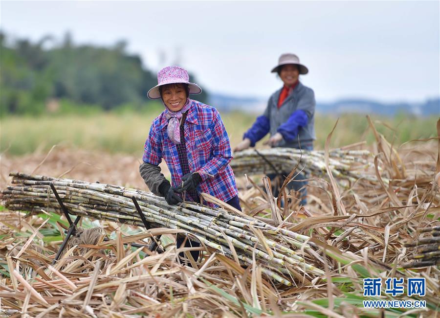 在鹿寨縣鹿寨鎮(zhèn)新村村,村民在搬運(yùn)收獲的甘蔗(1月11日攝)。新華社記者黃孝邦攝