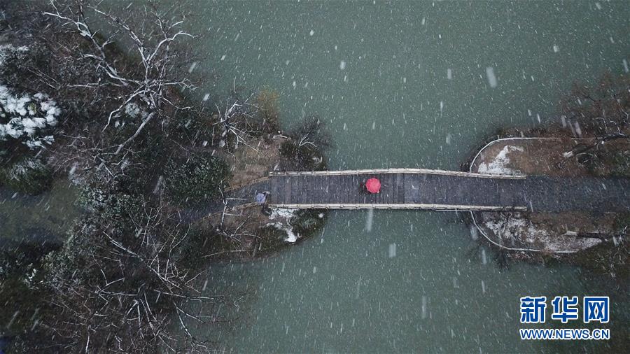 這是1月15日拍攝的合肥市包公園雪景(無人機照片)。 當(dāng)日,安徽省合肥市迎來降雪天氣。雪中的合肥市包公園景色別致。 新華社記者 張端 攝