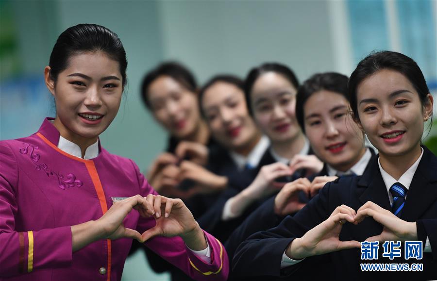 吉如(左一)在車站職工活動(dòng)室里指導(dǎo)同事禮儀訓(xùn)練(1月15日攝)。新華社記者陶明攝