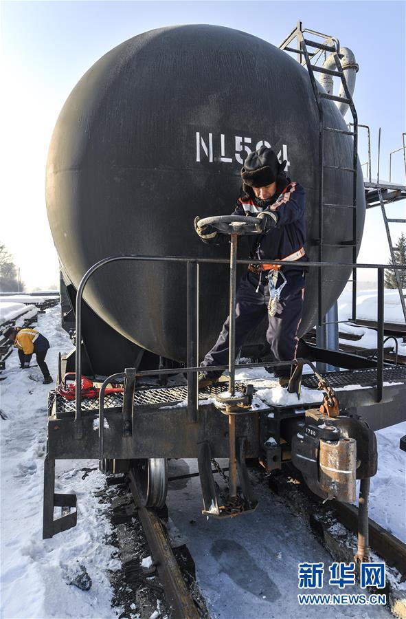 林海間的“送水小火車”調(diào)車員對“送水小火車”進(jìn)行出行前的檢查作業(yè)(1月17日攝)。新華社記者許暢攝