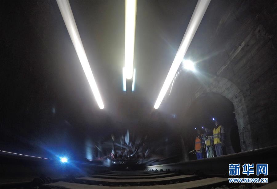 1月9日,在加格達奇工務(wù)段西羅奇嶺二號隧道,西羅奇維修工隊工作人員在避車洞內(nèi)躲避列車。新華社記者王毓國攝