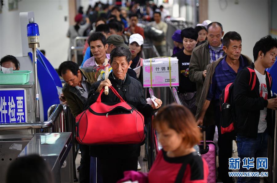 1月19日,來自湖南的務工人員在??谛阌⒏圯喍纱a頭登船返鄉(xiāng)。 新華社記者 郭程 攝