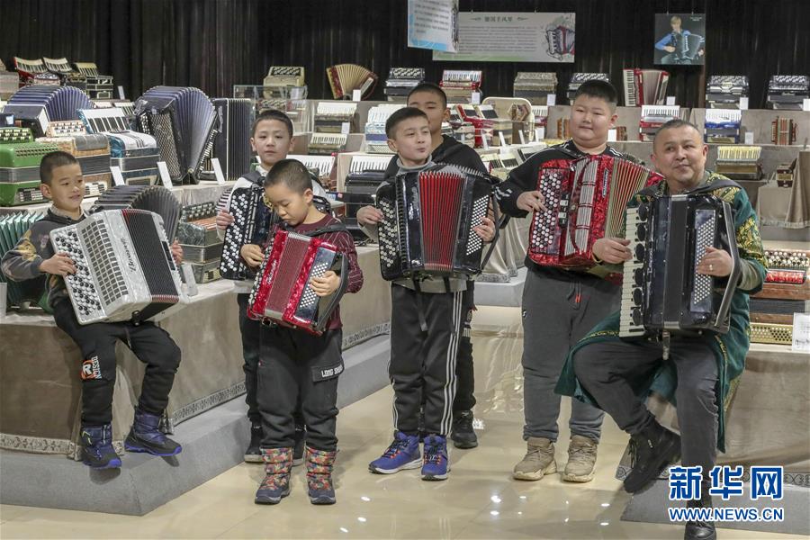 在塔城市手風琴博物館,當地文藝愛好者為游客演奏手風琴(1月21日攝)。新華社記者 趙戈 攝