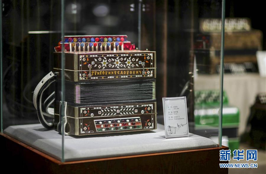 塔城市手風琴博物館里展出的產自俄羅斯的手風琴(1月21日攝)。新華社記者 趙戈 攝