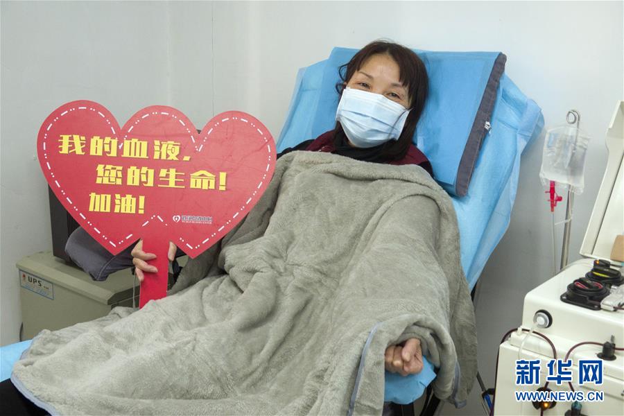 在武漢血液中心的中國(guó)醫(yī)學(xué)科學(xué)院CPnCoV項(xiàng)目組,康復(fù)病人、來自漢口醫(yī)院的護(hù)士蔡桃英在獻(xiàn)血漿時(shí)拍照留念。她說同事們都在一線忙碌,她獻(xiàn)血漿后,再休息幾天就準(zhǔn)備回到崗位上班,她說自己感染是由于早期防護(hù)不足經(jīng)驗(yàn)不夠造成的,再次回到工作崗位一定沒有問題(2月17日攝)。 新華社記者 才揚(yáng) 攝