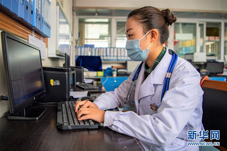 在西藏自治區(qū)人民醫(yī)院實習(xí)的西藏大學(xué)醫(yī)學(xué)院2017級內(nèi)科學(xué)專業(yè)研究生張澤鑫在工作中(2月23日攝)。新華社記者孫非攝