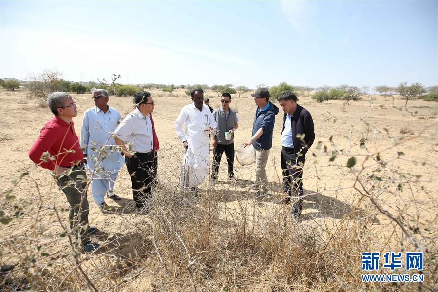 2月26日,在巴基斯坦信德省,中國蝗災防治工作組專家與當?shù)刂位裙ぷ魅藛T交談。新華社記者劉天攝