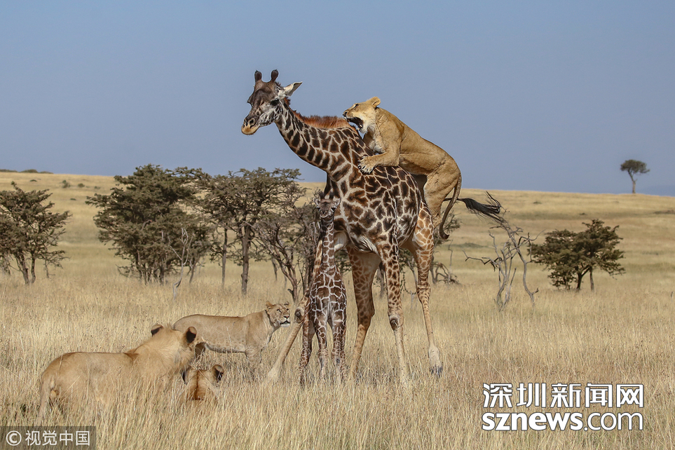 詹姆斯·納帕索解釋說(shuō):“這頭小鹿出生只有幾天時(shí)間,但對(duì)獅群來(lái)說(shuō),要捕獲它仍然是一場(chǎng)巨大的挑戰(zhàn),因?yàn)槟搁L(zhǎng)頸鹿竭力保護(hù)它的孩子,而成年長(zhǎng)頸鹿的飛踹對(duì)獅子來(lái)說(shuō)通常是致命的?!弊罱K,由于被獅子攻擊頸部,這位勇敢的母親退卻了,它最終失去了它的幼崽。
