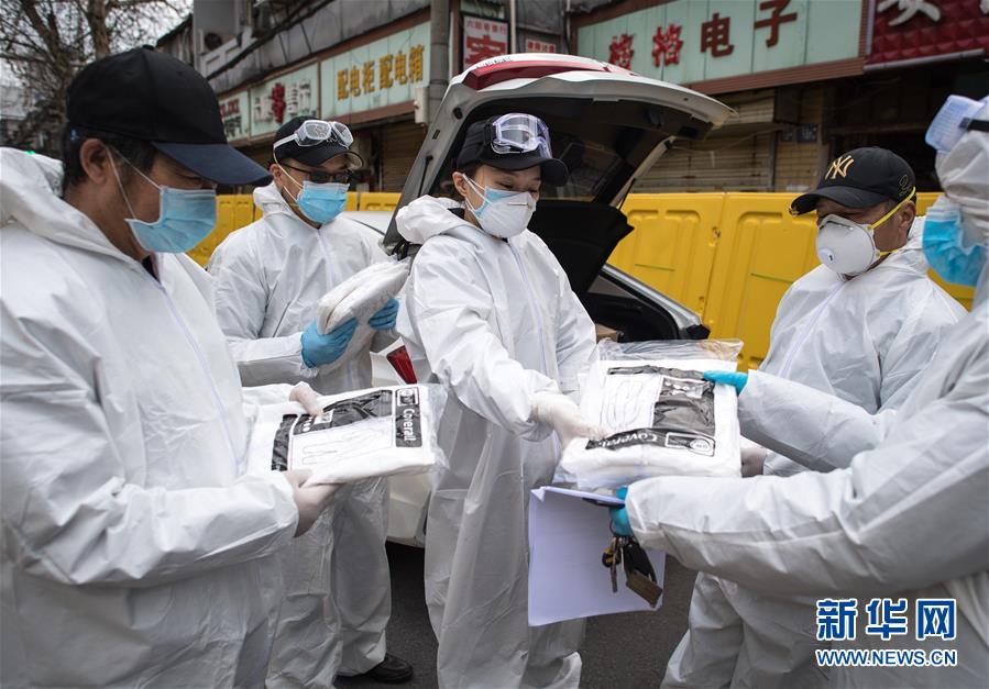 2月29日,W大武漢緊急救援隊隊長王紫懿(中)為隊員發(fā)放防護服。她說,現(xiàn)在防護物資十分緊缺,隊員們都在省著用,希望能撐到疫情結(jié)束。新華社記者 肖藝九 攝