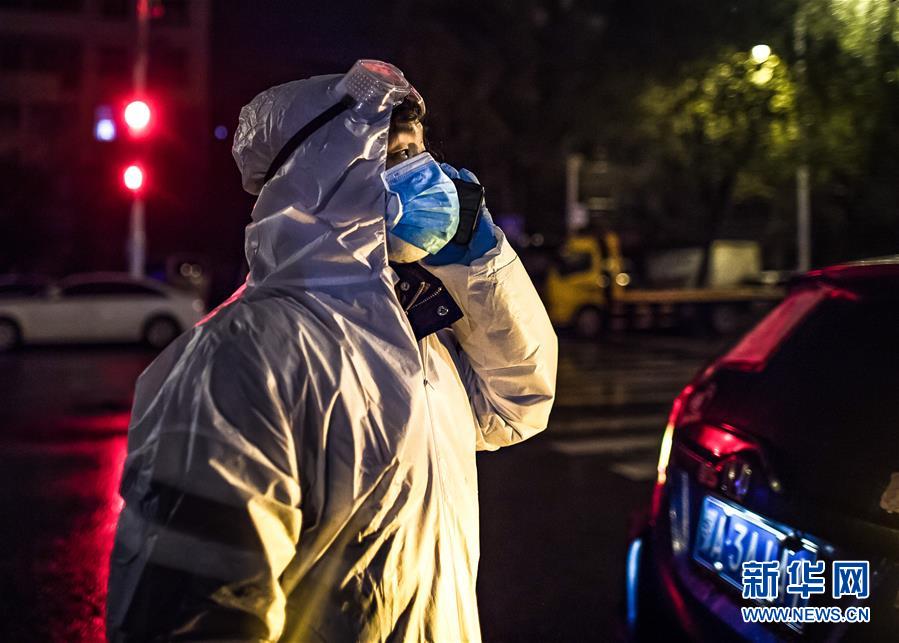 2月29日凌晨,王震到達約定地點后和產婦劉婷家屬聯(lián)系。新華社記者 肖藝九 攝