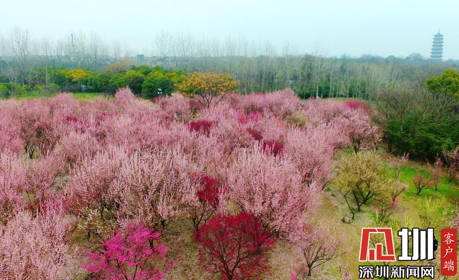 江蘇省揚州市蜀岡西峰生態(tài)公園內(nèi)梅花競相綻放,五顏六色的梅花樹為古城大地披上七彩春裝,美不勝收。