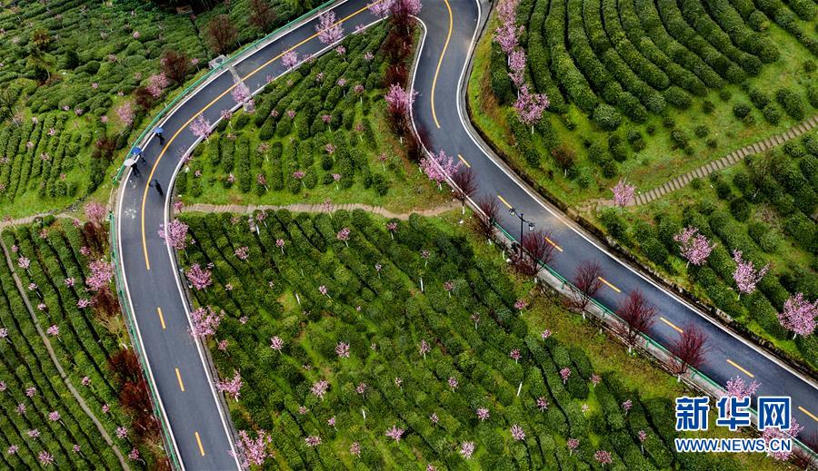 3月2日,游人在春雨中游覽平利縣長(zhǎng)安鎮(zhèn)洪福茶山(無(wú)人機(jī)照片)。新華社記者陶明攝