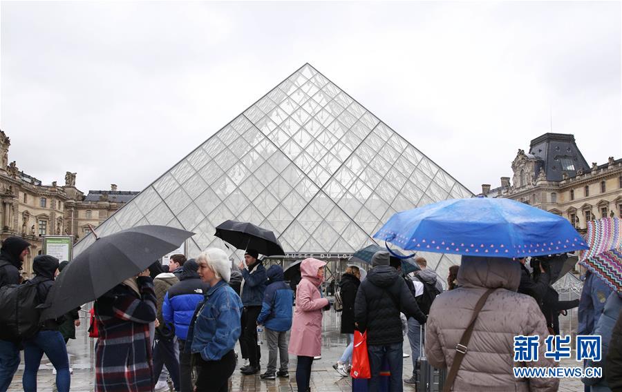 3月2日,在法國(guó)巴黎,游客撐傘走過(guò)盧浮宮的玻璃金字塔。新華社記者 高靜 攝