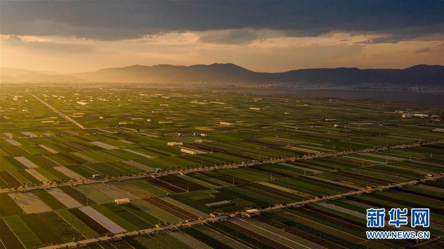 時(shí)下正值農(nóng)忙時(shí)節(jié),云南省玉溪市通海縣的農(nóng)作物長(zhǎng)勢(shì)喜人,山巒、湖水與農(nóng)田組成了一幅美麗的田園詩(shī)畫(huà)卷。