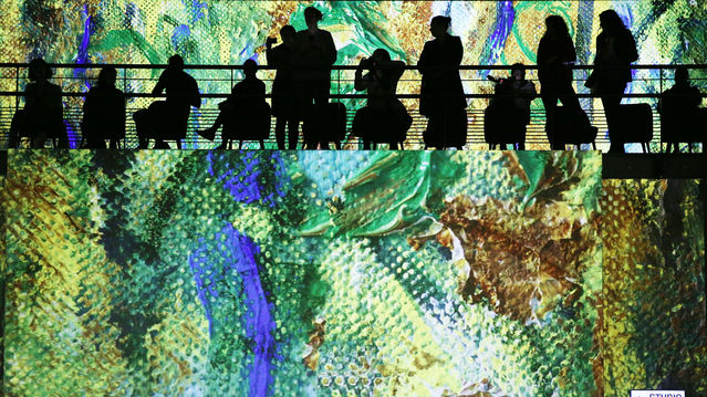 2月27日,在法國(guó)巴黎,人們?cè)凇稄哪巍⒗字Z阿到夏加爾:地中海之旅》光影藝術(shù)沉浸展的媒體預(yù)展上參觀。《從莫奈、雷諾阿到夏加爾:地中海之旅》光影藝術(shù)沉浸展將于2020年2月28日至2021年1月3日在法國(guó)巴黎舉行。展覽利用數(shù)碼投影技術(shù)為觀眾展示包括莫奈、雷諾阿、夏加爾等在內(nèi)的20位藝術(shù)大師關(guān)于地中海題材的代表作,讓觀眾沉浸在從印象派到現(xiàn)代主義畫作的視聽享受中。新華社記者高靜攝
