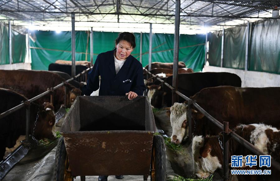在貴州省銅仁市德江縣平原鎮(zhèn)坳田村,養(yǎng)殖戶在坳田畜牧養(yǎng)殖農(nóng)民專業(yè)合作社喂牛(2月29日攝)。新華社記者 楊文斌 攝