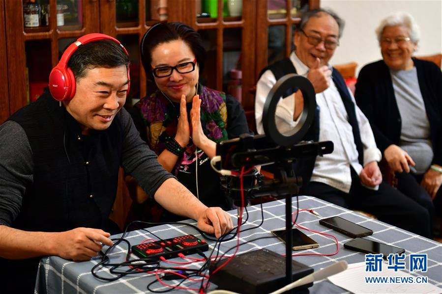 武凌云、王春梅夫妻在直播中表演晉劇片段(3月5日攝)。 新華社記者 曹陽 攝
