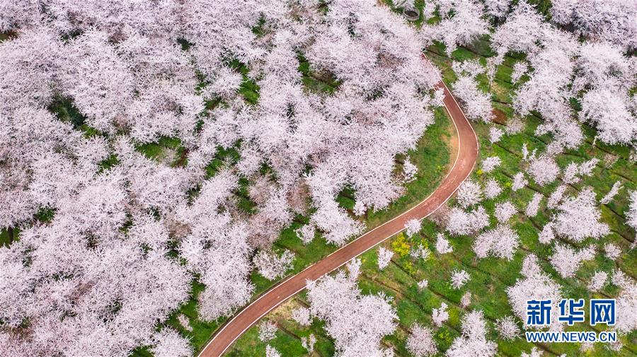 3月12日拍攝的貴安新區(qū)櫻花觀光園風(fēng)景(無人機(jī)照片)。 近日,貴州省貴安新區(qū)櫻花觀光園內(nèi)櫻花競(jìng)相盛開,花團(tuán)錦簇間春意盎然。據(jù)介紹,疫情防控期間,為避免人群聚集,櫻花園暫不接待游客。 新華社記者 陶亮 攝