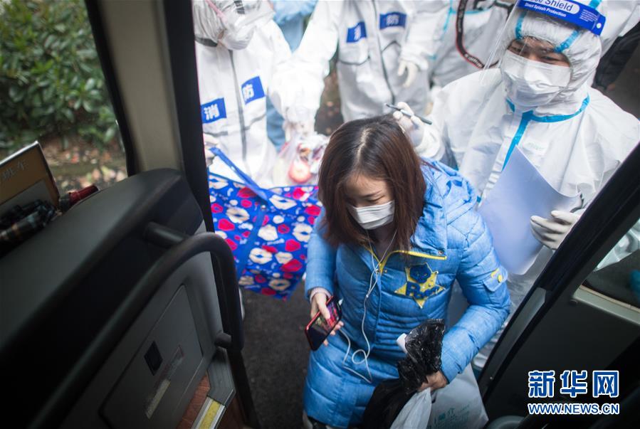 3月12日,黎婧(前)在志愿者的陪護下登上大巴。 3月12日,插畫師黎婧和84位病友離開自己居住的武漢軟件工程職業(yè)學院康復驛站,回到自己家中。他們都是治愈出院的新冠病毒肺炎患者,已經(jīng)在武漢軟件工程職業(yè)學院康復驛站進行了14天醫(yī)學觀察,達到醫(yī)學標準,成功解除隔離。他們由專車運送至所屬社區(qū)附近的集散點后,在社區(qū)工作人員的陪同下回家。 新華社記者 肖藝九 攝