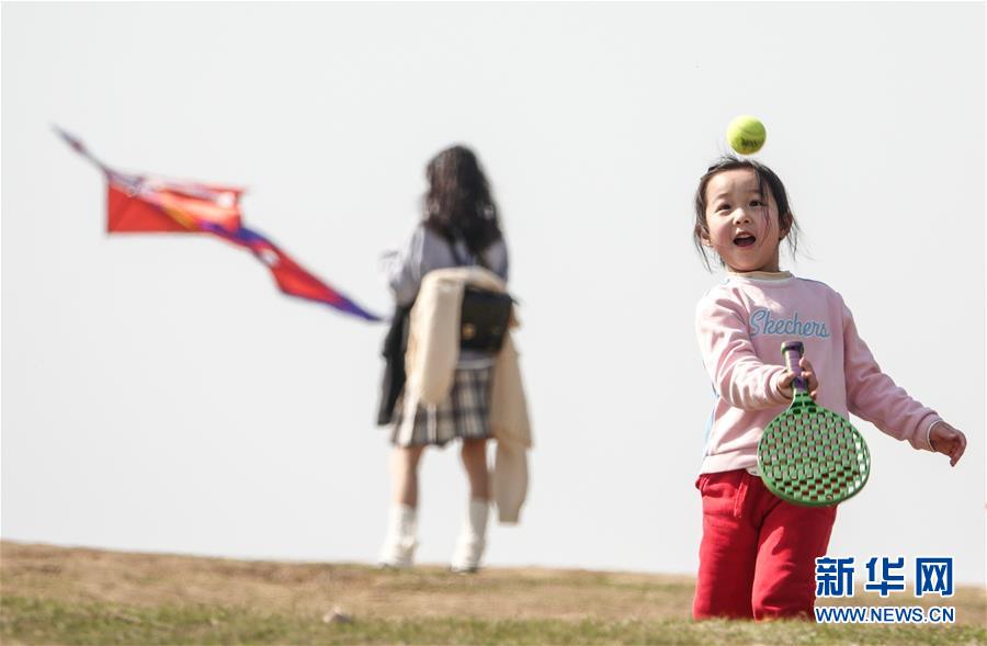 3月15日,一名小朋友在南京東郊體育公園練習(xí)兒童網(wǎng)球。 當(dāng)日,南京風(fēng)和日麗,市民們來到東郊體育公園,踏青春游。 新華社記者 楊磊 攝