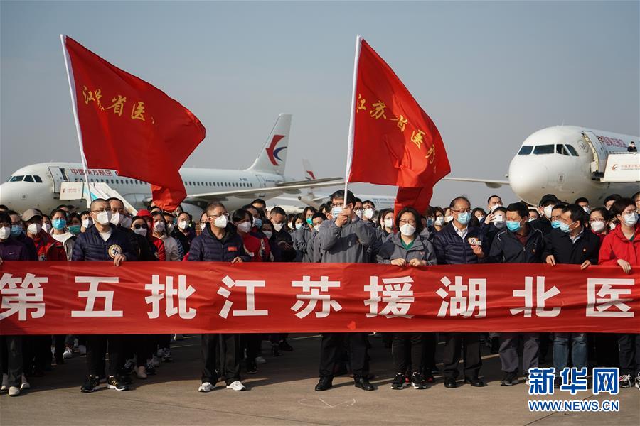 3月17日,醫(yī)療隊(duì)隊(duì)員抵達(dá)江蘇南京祿口國際機(jī)場。新華社記者季春鵬攝