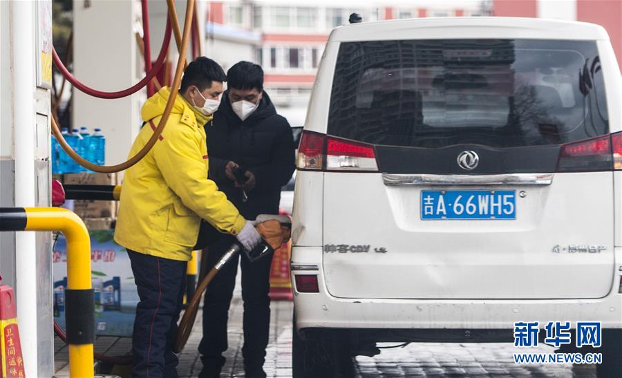 3月17日,吉林省長(zhǎng)春市一處加油站工作人員為車(chē)輛加油。  國(guó)家發(fā)展改革委17日宣布,近日國(guó)際市場(chǎng)油價(jià)持續(xù)下跌,按照現(xiàn)行成品油價(jià)格形成機(jī)制,自2020年3月17日24時(shí)起,國(guó)內(nèi)汽油、柴油價(jià)格每噸分別降低1015元和975元。折合每升價(jià)格下調(diào)約8角。此次調(diào)價(jià)已至每桶40美元調(diào)控下限,即俗稱(chēng)的“地板價(jià)”,低于40美元部分不再下調(diào)。新華社記者 許暢 攝