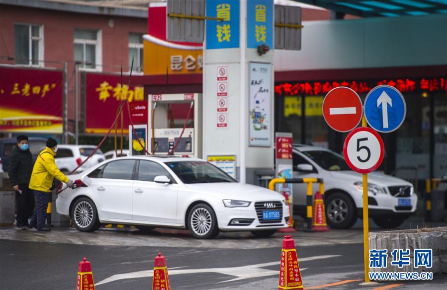 3月17日,車輛在吉林省長春市一處加油站加油。 新華社記者 許暢 攝