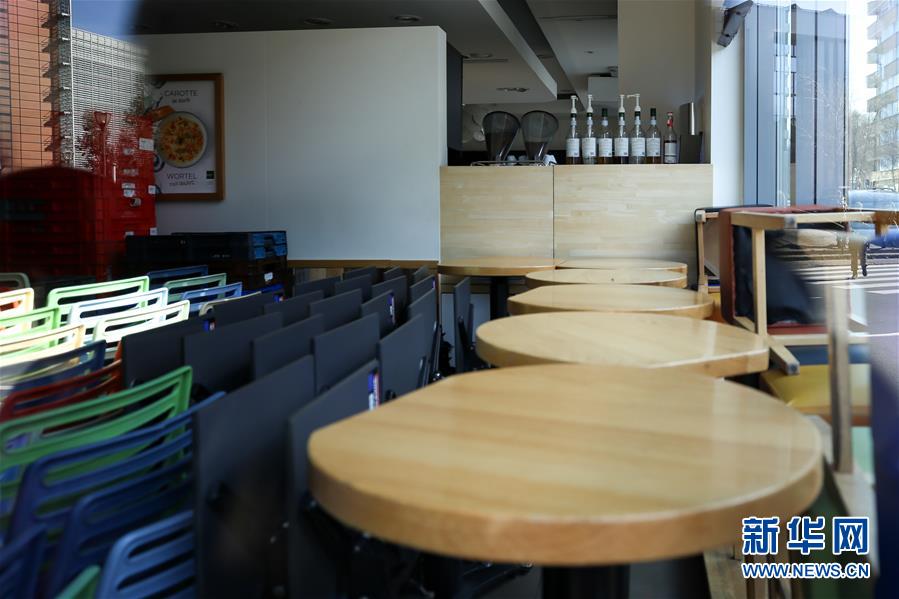 這是3月18日在比利時布魯塞爾拍攝的一家關閉的咖啡館。 新華社記者 張鋮 攝