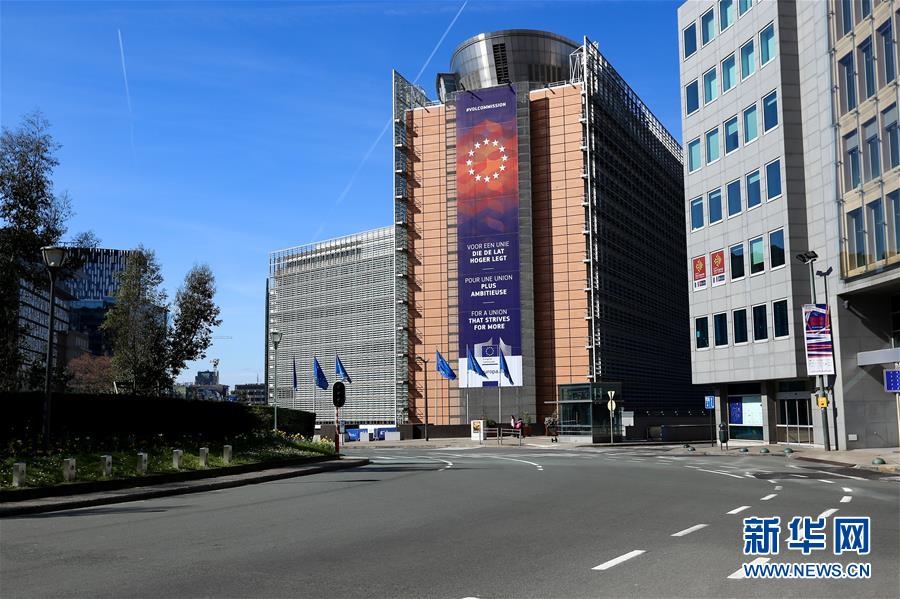 3月18日,在比利時布魯塞爾,舒曼廣場行人寥寥。 新華社記者 張鋮 攝
