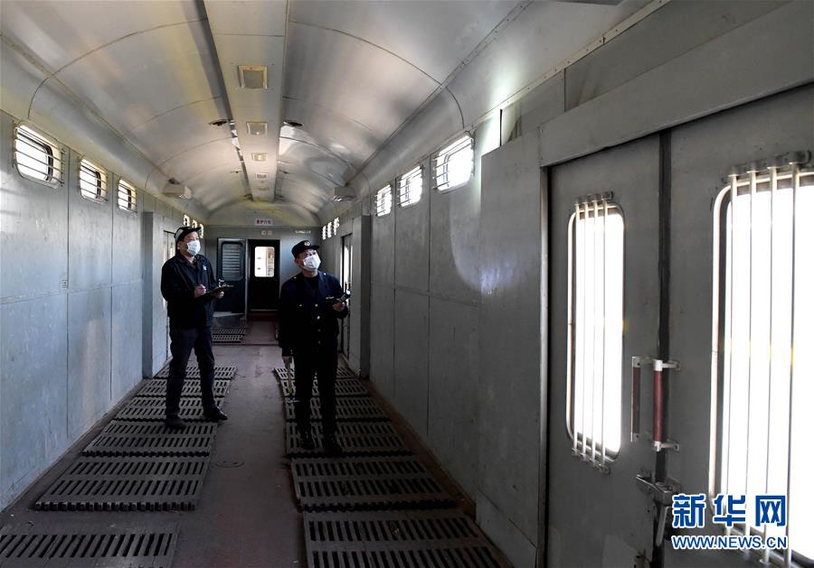 3月19日,鄭州車輛段客車檢車員劉凱(左)和王東亮在檢查客車行李車的車廂內(nèi)部。新華社記者 李安 攝