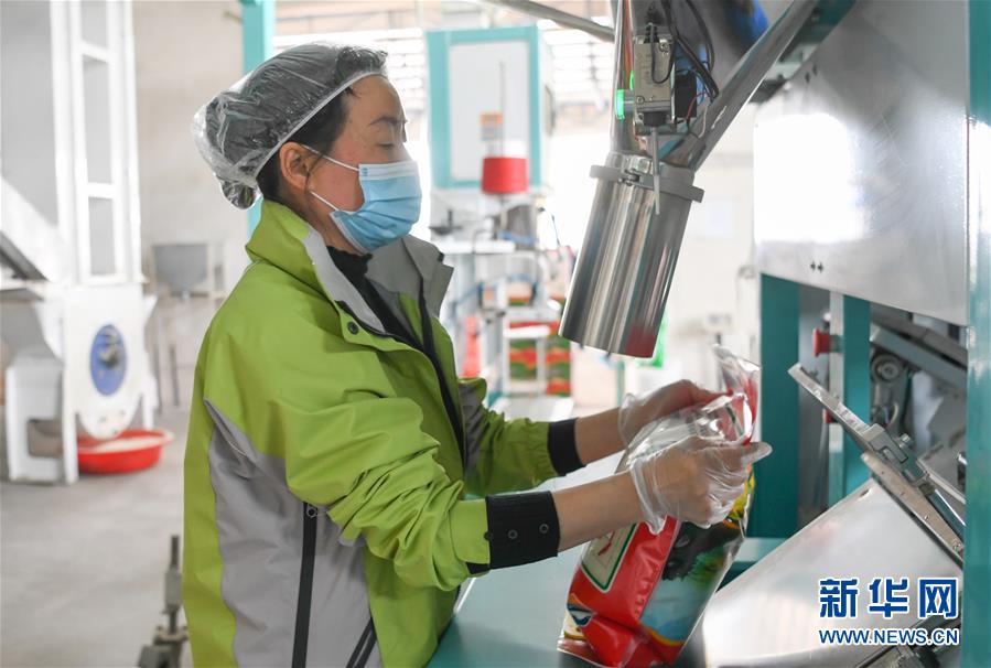 湖北當(dāng)陽市壩陵辦事處群華村村民宋發(fā)林(右)和妻子在農(nóng)產(chǎn)品合作社包裝產(chǎn)品,準(zhǔn)備通過電商外銷(3月21日攝)。近日,湖北當(dāng)陽市農(nóng)業(yè)生產(chǎn)和農(nóng)產(chǎn)品加工加速恢復(fù)。截至3月19日,當(dāng)陽市86家規(guī)上農(nóng)產(chǎn)品加工企業(yè)復(fù)工復(fù)產(chǎn)率為84.9%,51家農(nóng)業(yè)產(chǎn)業(yè)化重點龍頭企業(yè)有48家復(fù)工復(fù)產(chǎn),占比達(dá)94.1%。新華社記者程敏攝