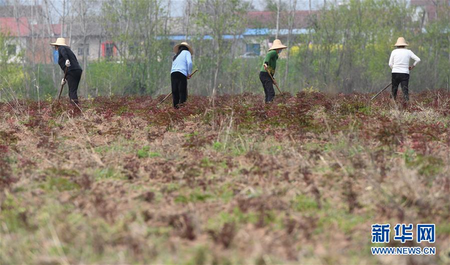 湖北當(dāng)陽市壩陵辦事處群華村農(nóng)民在中藥材白芍田里除草(3月21日攝)。近日,湖北當(dāng)陽市農(nóng)業(yè)生產(chǎn)和農(nóng)產(chǎn)品加工加速恢復(fù)。截至3月19日,當(dāng)陽市86家規(guī)上農(nóng)產(chǎn)品加工企業(yè)復(fù)工復(fù)產(chǎn)率為84.9%,51家農(nóng)業(yè)產(chǎn)業(yè)化重點龍頭企業(yè)有48家復(fù)工復(fù)產(chǎn),占比達(dá)94.1%。新華社記者程敏攝