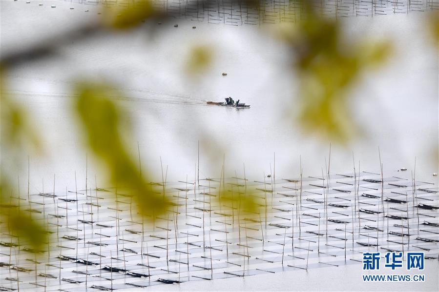 11月4日,漁民在霞浦縣三沙鎮(zhèn)的紫菜種植區(qū)收獲紫菜。近日,福建省霞浦縣沿海6萬畝紫菜迎來收獲季節(jié),漁民們出海收獲紫菜,海上田園一派繁忙豐收景象。新華社記者姜克紅攝