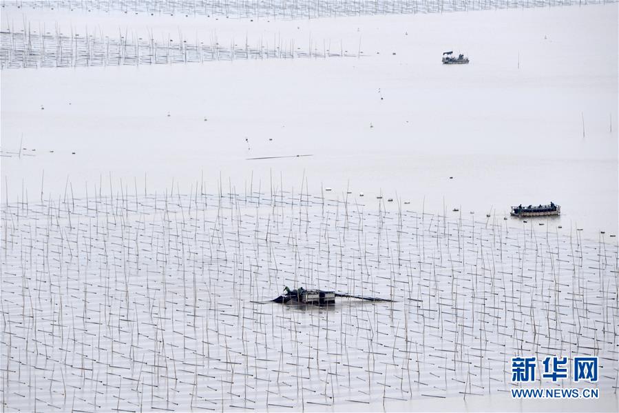 10月24日,福建莆田蔣山村村民在收獲紫菜。 新華社記者姜克紅攝