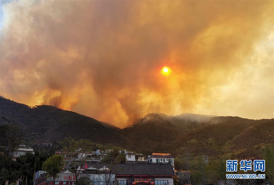 這是3月31日在四川省西昌市邛海畔拍攝的瀘山火場(chǎng)畫(huà)面。新華社記者惠小勇攝
