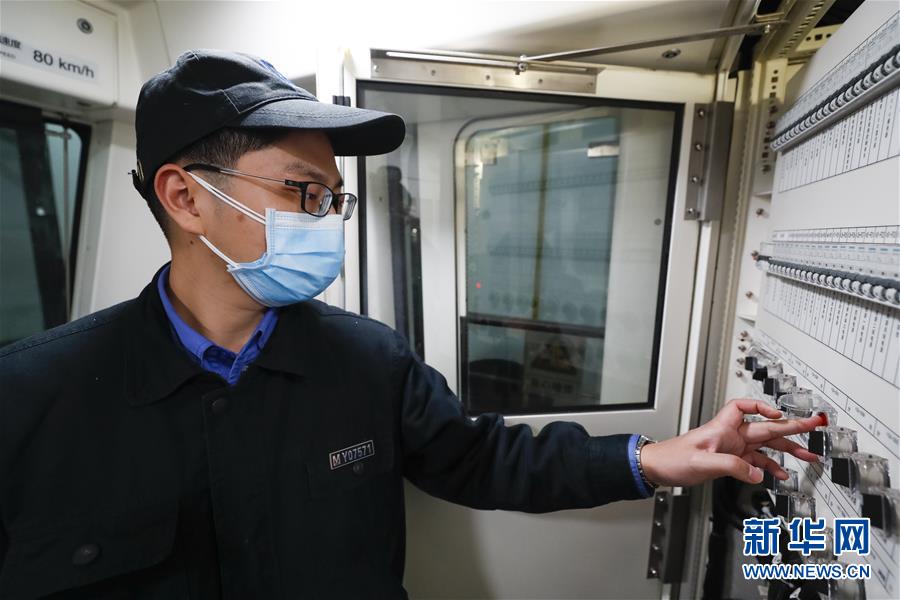 3月23日,武漢地鐵運(yùn)營有限公司車輛二部檢修一車間檢修員萬交林在地鐵列車上緩解所有制動,并檢查車輛制動相關(guān)功能。新華社記者沈伯韓攝