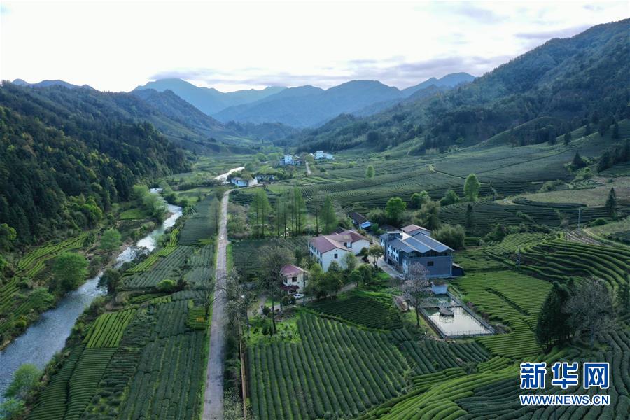 武夷山國(guó)家公園內(nèi)茶園青翠,即將進(jìn)入采摘期(4月1日攝,無(wú)人機(jī)照片)。  新華社記者 姜克紅 攝