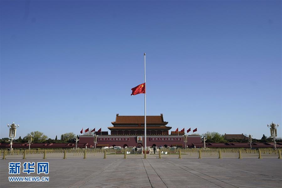 4月4日,北京天安門廣場降下半旗,表達對抗擊新冠肺炎疫情斗爭犧牲烈士和逝世同胞的深切哀悼。新華社記者 鞠煥宗 攝