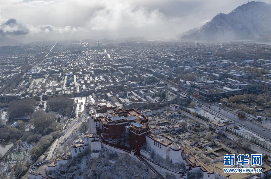 當日,西藏拉薩迎來降雪,高原古城銀裝素裹,美如畫卷。新華社記者普布扎西攝