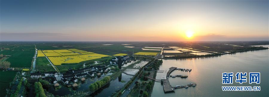 這是4月5日拍攝的白馬湖風(fēng)光(無人機全景照片)。 新華社記者 楊磊 攝