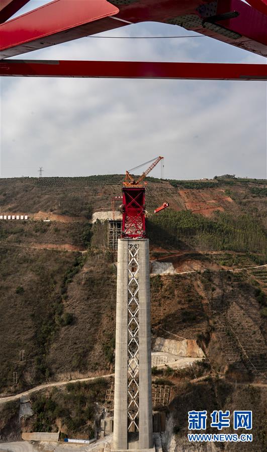 中老鐵路元江特大橋“邁”過(guò)第一高墩