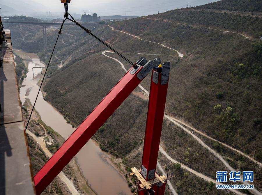 中老鐵路元江特大橋“邁”過第一高墩