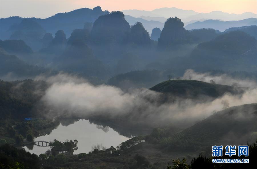 4月8日拍攝的沐浴在晨光中的武夷山星村鎮(zhèn)茶山。新華社記者魏培全攝