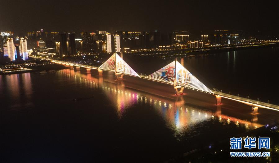 4月8日零時(shí)起,武漢市正式解除離漢離鄂通道管控措施,全市景觀照明開(kāi)啟(無(wú)人機(jī)照片)。新華社記者程敏攝