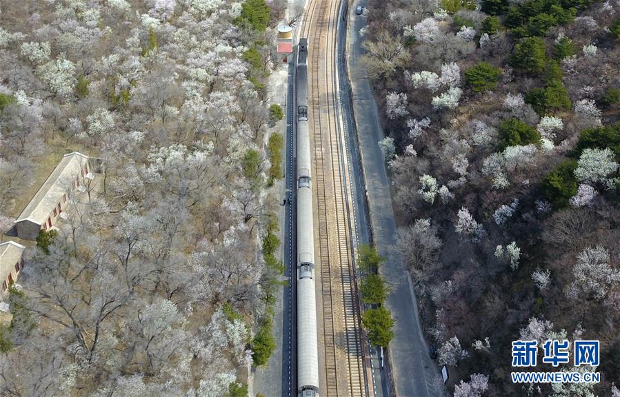 4月8日,北京青龍橋火車站附近春花盛開(無人機(jī)照片)。 新華社記者張晨霖攝