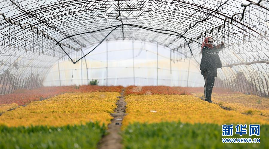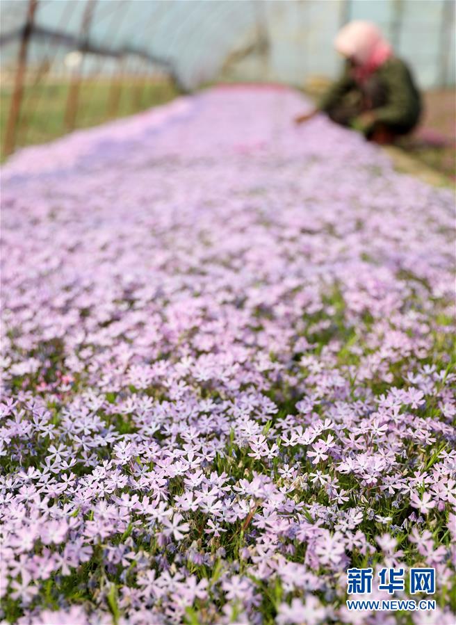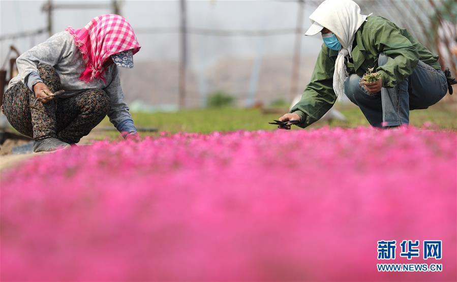 4月13日,花農在八角臺街道雅化村一塊花圃內分揀培育好的花苗。新華社記者姚劍鋒攝