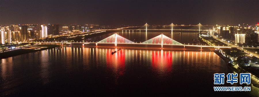 4月14日拍攝的武漢長江二橋附近夜景。新華社記者才揚攝